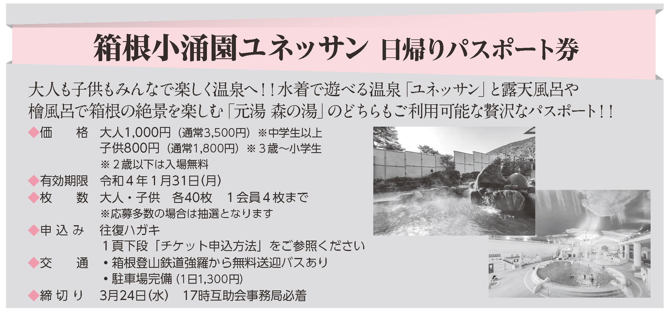 ④箱根小涌園ユネッサン 申込:往復はがき 締切:3/24(水)
