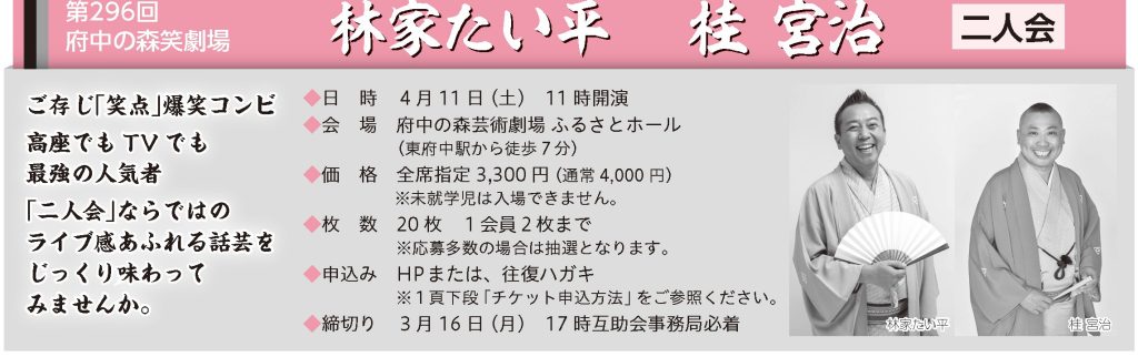 申込 HP・往復ハガキ 締切 3月23日(月)